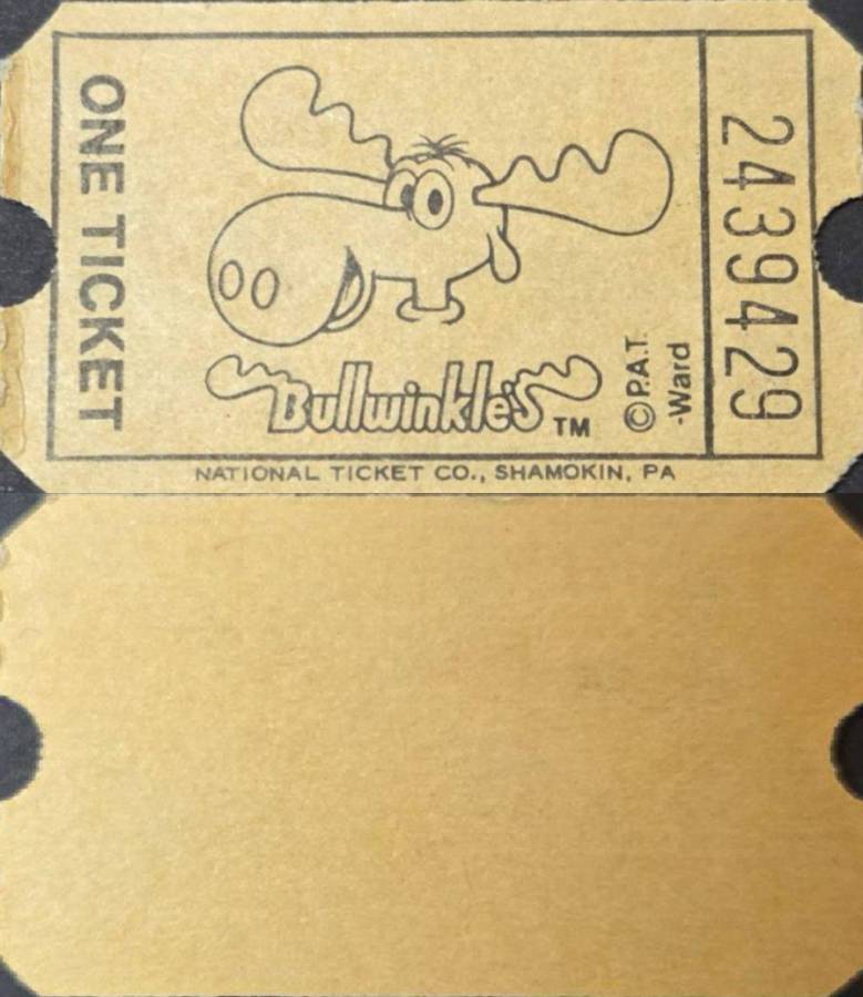 Front Text: Bullwinkle's, One Ticket, PAT-WARD