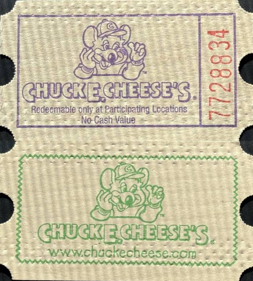 Since Chuck E. Cheese's opening in 1977, paper tickets have been in use. These tickets are simply just your standard run of the mill ticket; however, they usually have Chuck E's face printed onto them. Between the 70's and early 90's at Chuck E. Cheese tickets needed to be hand counted. That was until the introduction of a machine called the Ticket Muncher in 2000. This machine would suck in your tickets and count them using a sensor. It would then print a paper receipt with your total number of tickets on it. The machine would make a loud crunching noise while eating your tickets and was themed after Mr. Munch.