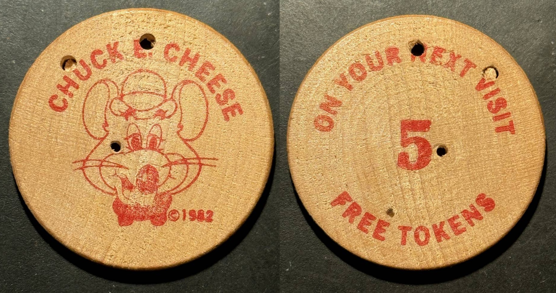 Tokens PO1-PO4 were not corporate issued. They were produced by franchises, and given out to children celebrating their birthday, and to students at schools. All of them were produced around the same time (roughly 1982-1989), and were used in relatively small geographical areas. PO1 was used in Portland, OR, and PO2 was used in southern California. It is thought that P03 and P04 were used somewhere in the Midwest. These tokens were produced in very low numbers (compared to corporate issued tokens), so they are very rare.