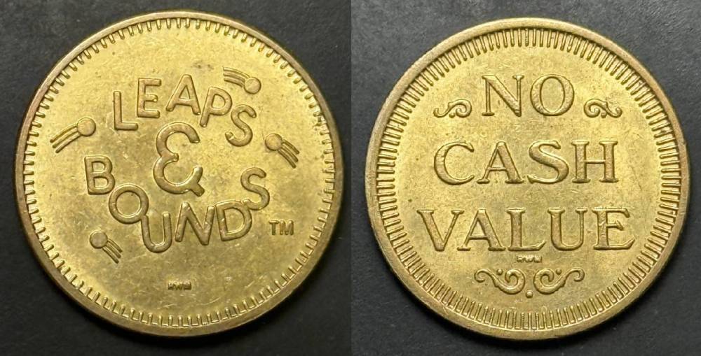 Leaps and Bounds had a design of two tubes with a block and circle in the middle on the front of the building to resemble the tube maze the play-place had featured. "Play with Purpose" was their slogan. It merged with competitor Discovery Zone in 1995, whose assets were later bought out by Chuck E. Cheese in 1999.