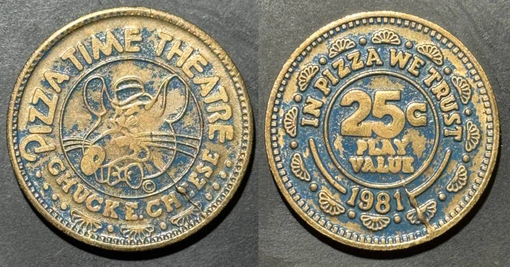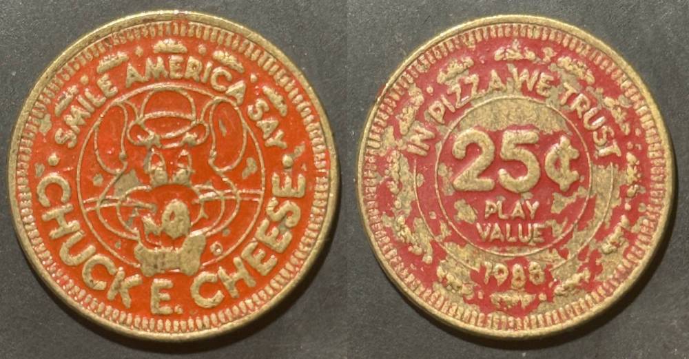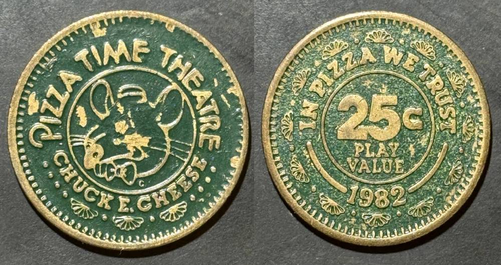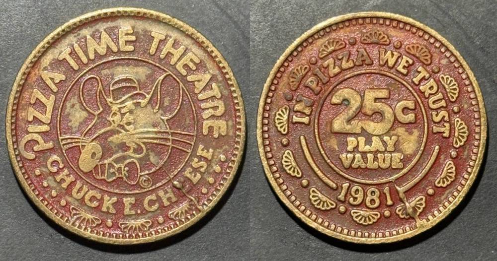 Obverse Text- PIZZA TIME THEATER, CHUCK E CHEESE