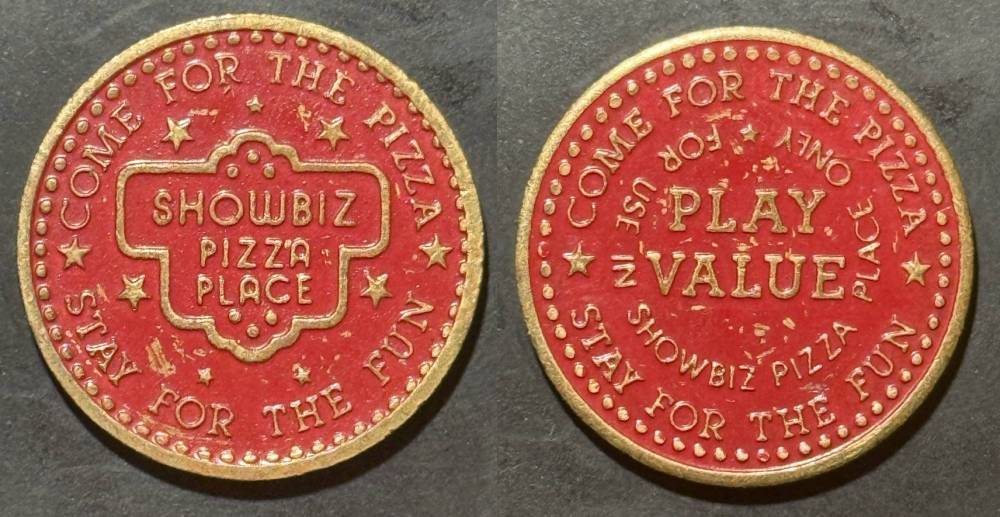 Obverse Text- SHOWBIZ PIZZA PLACE, COME FOR THE PIZZA, STAY FOR THE FUN