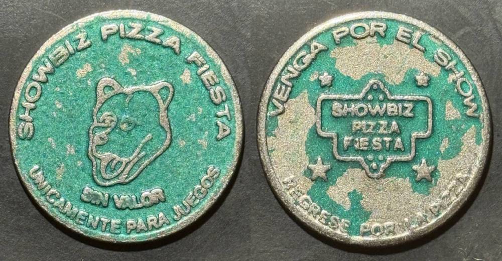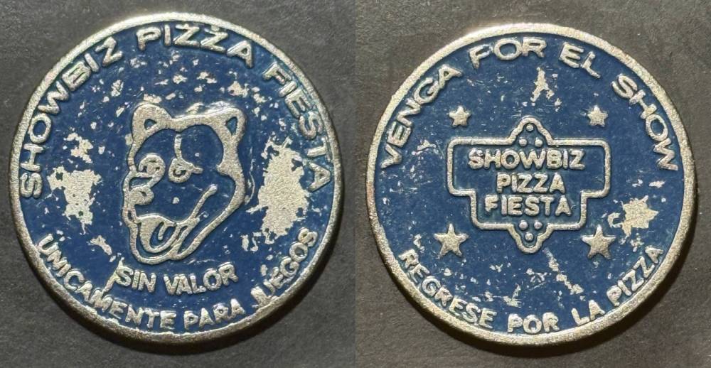 Obverse Text- Showbiz Pizza FIESTA, UNICAMENTE PARA JUEGOS, SIN VALOR
