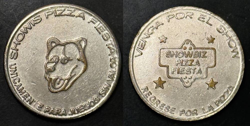Obverse Text- Showbiz Pizza FIESTA, UNICAMENTE PARA JUEGOS, SIN VALOR